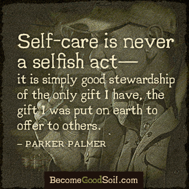 This quote is one of my favorites. It is a favorite because it is at once encouraging and challenging. It encourages me that finding that “me” time is critical. It challenges me because I too often neglect my self care. When I do that, it almost always has disastrous consequences.